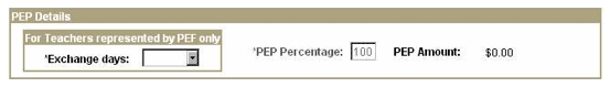 - If the enrollee is a PEF Teacher and is using less than the maximum 3 days, you should enter 1 or 2 days in the Exchange days field of the PEP Details section of the PEP enrollment form. (The default is 3 days) This is only to be used for teachers represented by PEF.
