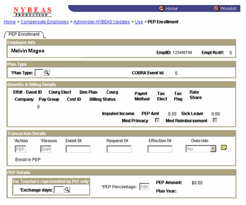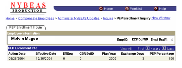 - Follow the NYBEAS links from Home, Compensate Employees, Administer NYBEAS Updates, Use, PEP enrollment.